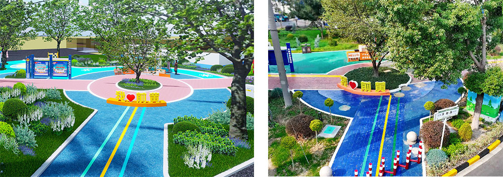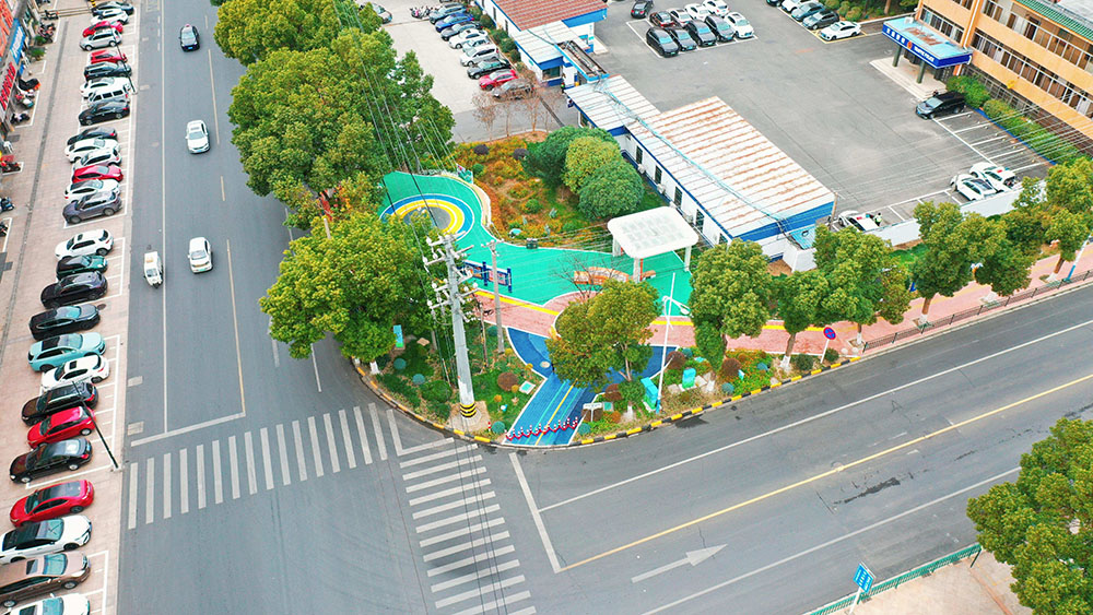 武进区前黄镇“景德客厅”口袋公园的成功落地,为小微地块如何转化为“民生幸福角”提供了优质范本。该项目由我院参与设计,选址于前黄镇文雅路与景德路交汇处,紧邻交警中队。结合区域实际情况,周边社区长期缺乏专属休闲活动场所,且安全宣传教育基础设施存在明显短板,这一现状成为项目设计的核心出发点。