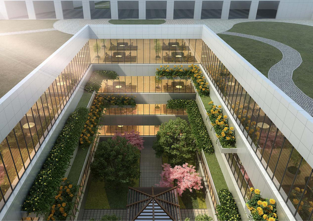 项目设计秉持“智能、绿色、人文、标杆”四位一体的核心理念。为智能装备制造量身定制,空间适应自动化、柔性化生产;全生命周期低碳设计,余热利用、高性能围护结构、良好的通风采光效果,打造近零碳工厂;关注员工健康与体验,通过屋顶花园、中部内庭院的自然采光通风、开阔空间营造人性化工作环境;树立工业建筑在技术集成、生态融合与城市形象方面的行业新标杆。