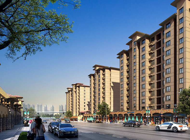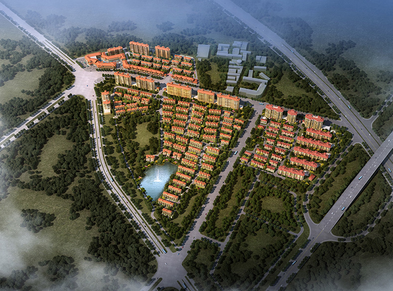 本项目由联排别墅、多层住宅、高层住宅三种产品构成,规划采用由矮到高的方式排布,高低错落;其中多层住宅、高层住宅,充分发挥端户三面采光的价值,将端户面积做大,中间则采用小户型。整个小区采用优雅、大气、温馨的西班牙风格,小区设有两个出入口,消防车道宽均≥4米,多层住宅单元均设尽端式消防回车场,高层住宅沿长边均设置消防登高场地,满足消防救援要求。