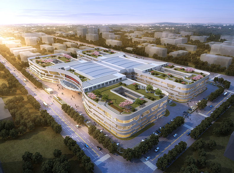 集约利用土地,创新工业厂房设计新模式,打造集生产、研发、展示、办公、会议、培训、餐饮等多功能结合的绿色工业综合体。建筑外墙材料采用银色铝塑板幕墙饰面,立面上用横向和竖向不规则的格式分段式处理,并利用富有变化层次的建筑分隔,形成不同建筑块面,使整个建筑简洁大方,体现现代企业的特色风格。